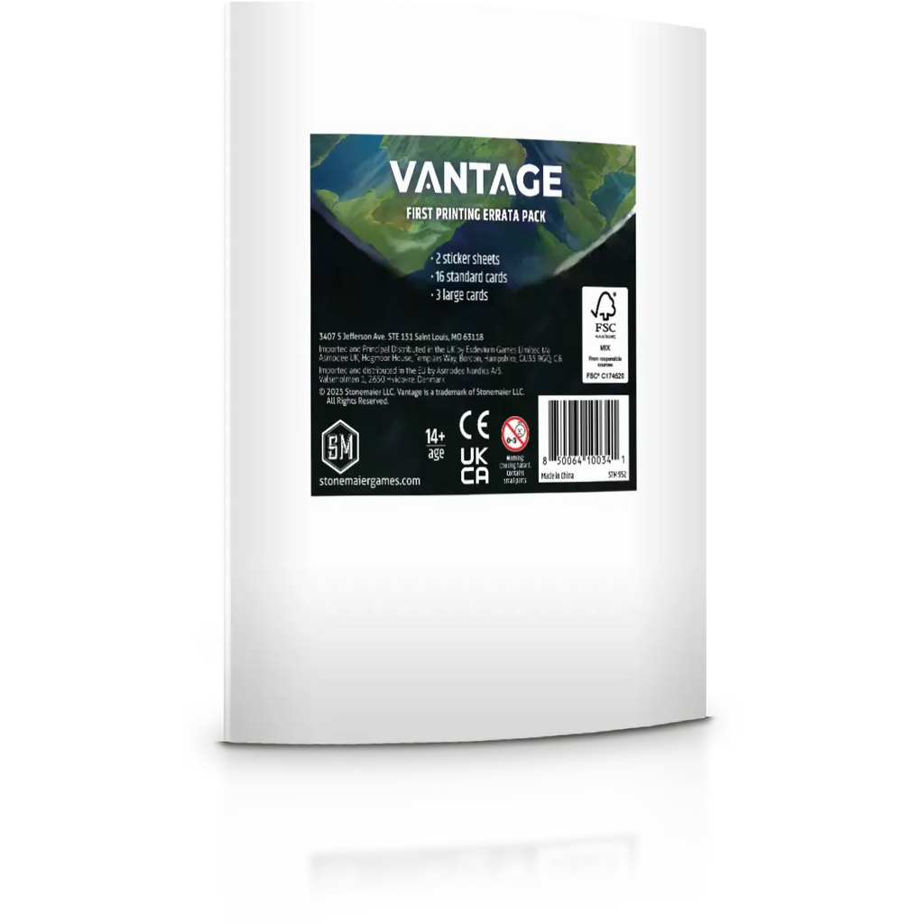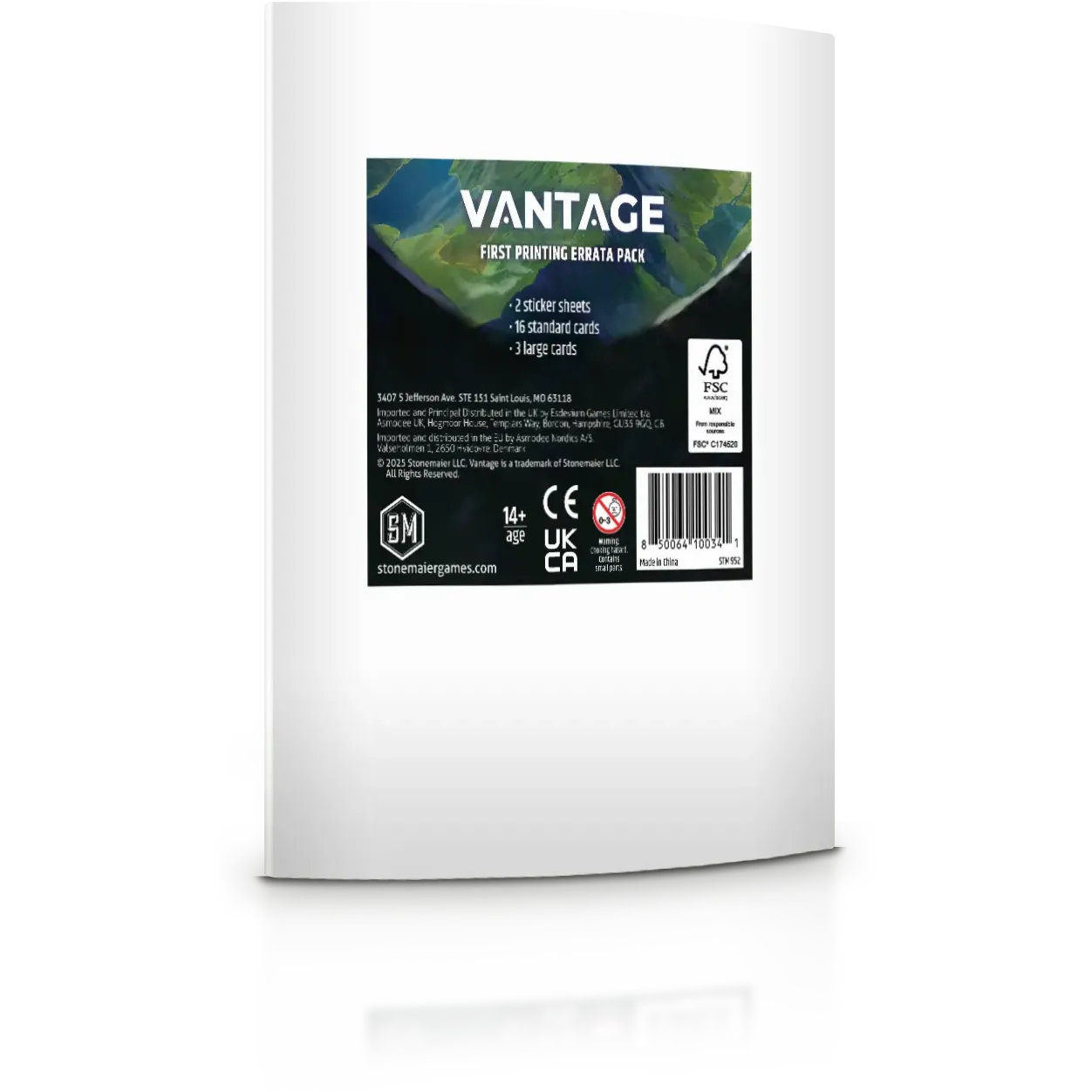 Thanks to the thousands of eagle-eyed players who have explored the first printing of Vantage, a few minor mistakes on some cards and several storybook entries were discovered. This update pack includes 15 cards and 2 sticker sheets for the storybooks (the storybook changes are also updated in the free Rulepop storybook web app).